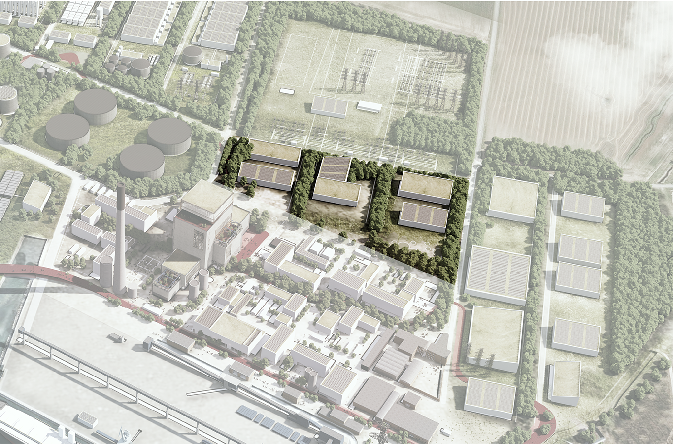 These new facilities are being built in Norbis Park – a 100-hectare area in north of Denmark. Norbis Park is the headquarters of Aalborg Forsyning, and the land is used for the gradual transition from the coal-fired power plant, Nordjyllandsværket to a future-proof heat production based on surplus heat and solar and wind energy.